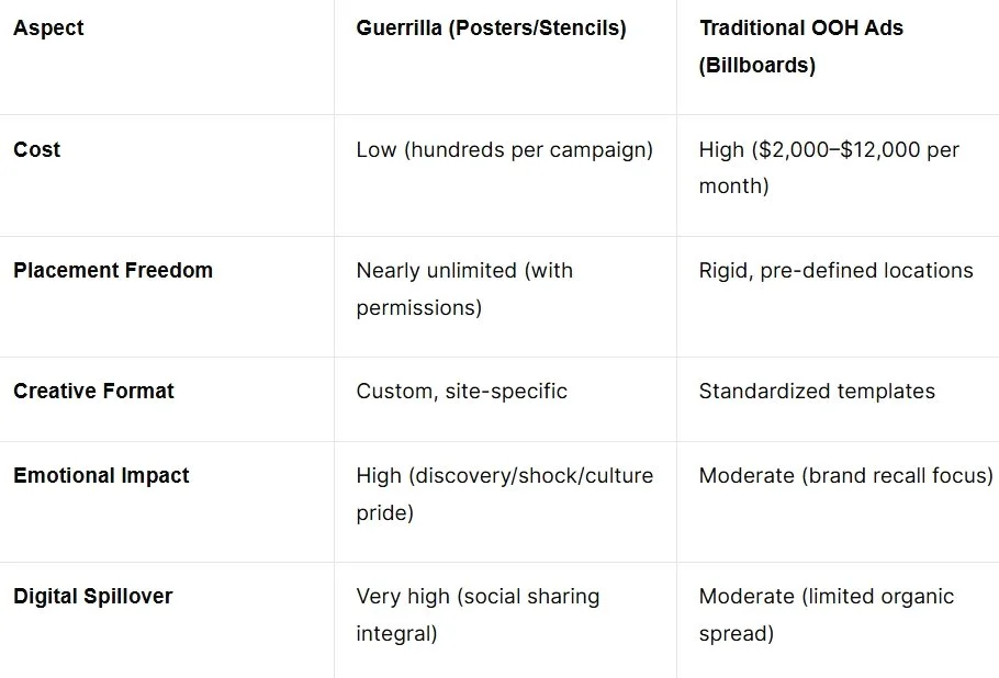 Cost and Flexibility: Wild posting is almost shockingly affordable relative to billboards or TV. Campaigns launch fast, scale at will, and adapt to real-time outcomes or neighborhood feedback.